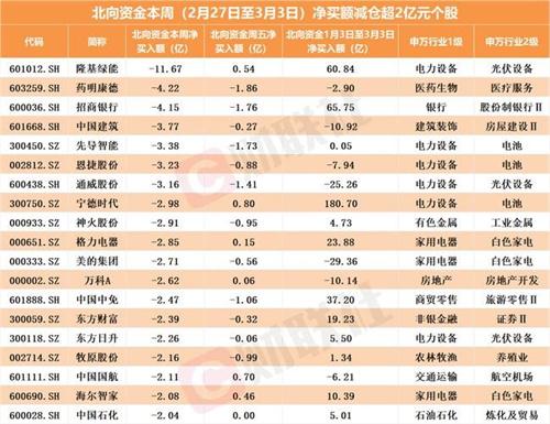 在賣出方面,北向資金本周有19只個股累計凈賣出,額超過了兩頁,其中有三只股票上榜的是白色家電(美的,格力和海爾),光伏設備(通威股份隆基綠能和東方日升),以及電池(恩捷股份,先導智能和寧德時代)其中容積率能在本周被北向資金境外出資達到了11.67億元,居于滬深A股的首位。