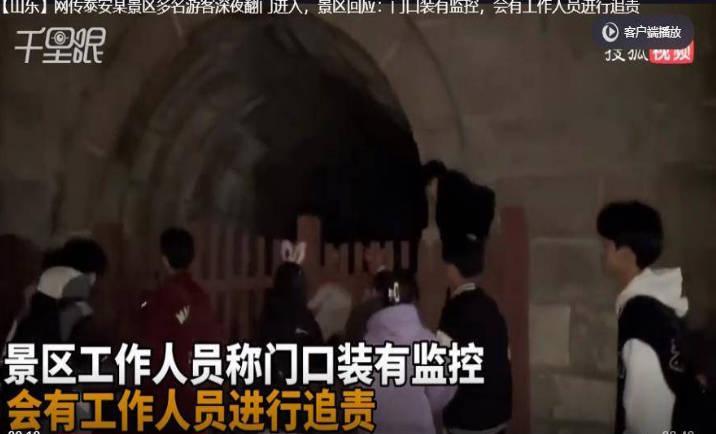 有網友在3月4日拍到山東泰安泰山景區,有多名游客深夜的時候從萬仙樓處翻越柵欄進入景區。泰山景區的相關工作人員在3月5日予以回應,稱景區內有監控。如果真的出現類似的情況,一定會被拍到,會針對這一行為進行追責,情節嚴重的人將會聯系執法部門介入。