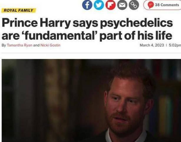 3月4日根據《紐約郵報》PAGE SIX報道,英國的哈里王子承認吸毒,表示迷幻藥是其生活的基本部分。