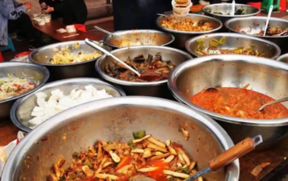 在食堂外邊可以看到工地食堂的飯菜,還是比較實惠的,食堂外邊擺著幾張大桌,上面放著各種各樣的菜品,看起來色香味俱全,不僅有紅燒茄子,火鍋魚,涼拌菜都被分開裝在了大盆里。學生可以根據自己的需求自由選擇飯菜的搭配,現成的菜品多達十幾種,可以滿足大多數人的飲食需求。