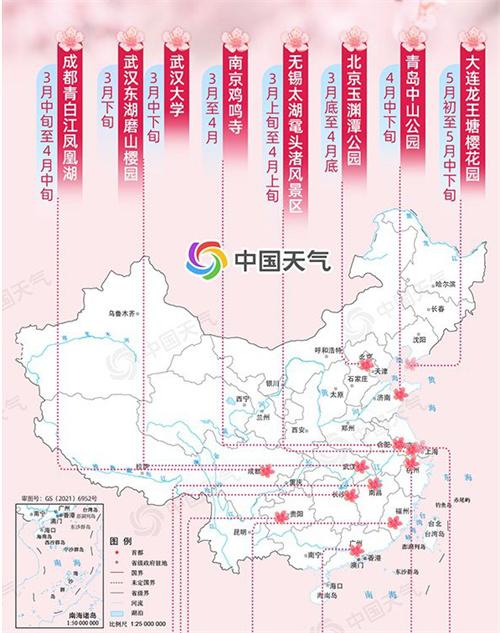 隨著全國各地的氣溫逐步升高,又來到了一年一度的賞櫻季櫻花在我國的種植面積比較廣泛,從南到北甚至在東北都可以看到櫻花的種植,由于我國的面積比較大,櫻花的品種也相對來說比較多,而且各地的櫻花開放時間是不同的,根據中國氣象部門剛剛推出的2023年全國賞櫻花地圖,可以為大家推薦觀賞櫻花的最佳時期和地點,這樣基本上在整個春季都可以看到櫻花開放的最佳狀態,與南方氣溫比較高,目前武漢南京等地已經相繼迎來了一年中觀賞櫻花的最佳時間。