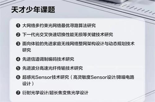 根據華為的相關消息稱目前華為的光產品線在光傳大和光接入方面已經連續15年保持著全球領先的地位,同時華為有著25年的生產技術經驗,目前華為正在打造智能車燈,智能光纖和光纖傳感等多個新產品,華為自從2019年正式啟動天才少年項目之后,已經有20多位天才少年進入到了華為。