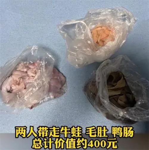 最近,在浙江金華永康市發生了一起自助餐餐廳食材被盜事件,據記者了解,此次事件是兩名女子在自助餐就餐期間,將餐廳中的牛蛙,鴨腸和毛肚之類的食材打包帶回家,事件被發現之后店主立即報警,經過調查迅速鎖定了此案的兩名嫌疑人,并對兩人進行了行政拘留的處罰。