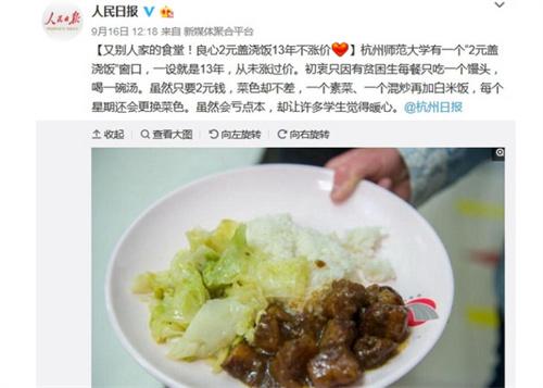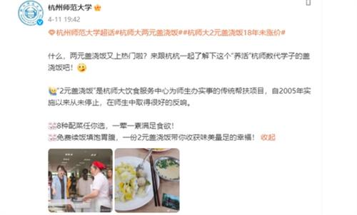 近日,一名網(wǎng)友在網(wǎng)上發(fā)帖曝光學(xué)校的兩元蓋澆飯歷史展板,此次曝光之后受到了很多網(wǎng)友的關(guān)注,據(jù)了解,事件中的兩元蓋澆飯是杭州師范大學(xué)專門為學(xué)生推出的一種食堂套餐,從2005年至今為止18年來直都未曾漲價(jià),并且提供免費(fèi)續(xù)飯的服務(wù),即便在十余年來,杭州師范大學(xué)歷經(jīng)了搬遷,無論學(xué)校搬到了哪里,兩元蓋澆飯的特色窗口都依舊存在,滿足了很多困難學(xué)生的就餐需求。