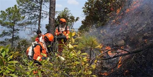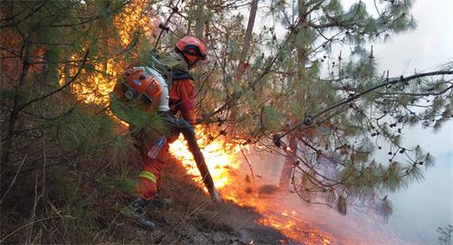 火場最高的海拔已經達到了2千米,火場植被非常茂密更多的是以云南松為主要樹種。消防人員趕到火場之后采取了不同的手段對火線實施撲打企圖滅火,火場的火勢受到風力的影響,撲打效果微乎其微,火勢依舊蔓延比較快,截止到4月14號玉溪山的火場火是依然沒有能夠得到有效的控制。