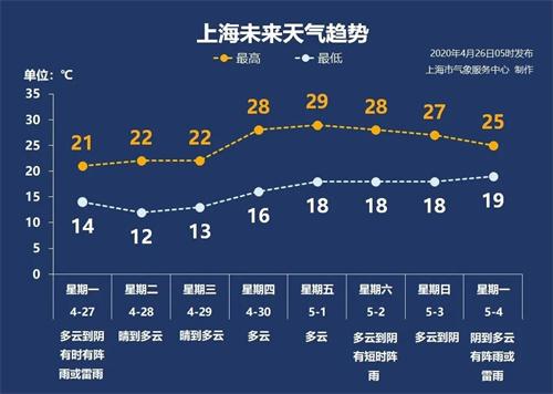 上海是在4月18日的白天受到夜間冷空氣的影響,迎來陣雨天氣,白天溫度并不低大概是在19~28℃之間,但是夜晚會出現(xiàn)降雨,所以在晚上出行或回來的人們需要帶好雨具,4月19日白天的氣溫大多數(shù)都是陰轉(zhuǎn)多云,會有陣雨,在夜間陣雨轉(zhuǎn)陰,一周都會受到冷空氣的影響,導(dǎo)致氣溫下降,4月20~21日天氣出現(xiàn)短暫的晴天,從4月22日起天氣伴有陰雨,主要是以小雨為主,氣溫的溫度明顯下降,最高的體溫不會超過20℃。
