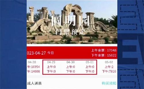 4月27號網(wǎng)傳圓明園五一門票163年首次售罄,有人查看了圓明園門票預(yù)訂上面的數(shù)據(jù),可以看到在4月29號到5月1號,所有的票全部被搶空,沒有任何余票,圓明園的工作人員稱163年以來圓明園的票第1次出現(xiàn)被賣完,不過現(xiàn)場有兌換紙質(zhì)票的服務(wù),現(xiàn)在網(wǎng)上是沒有門票可售了,工作人員還稱門票還是能夠買到的,大家可以關(guān)注一下圓明園官方微博。