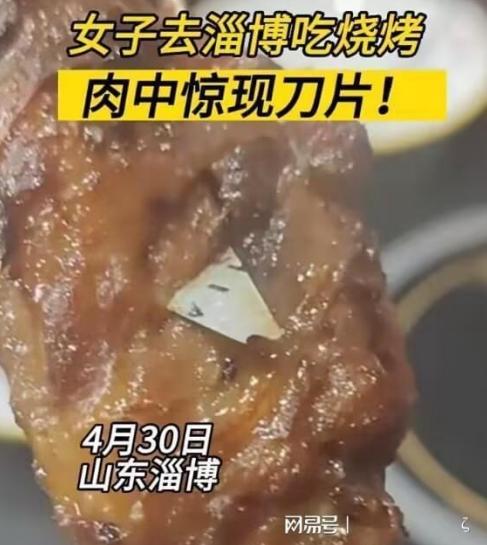 4月30日,有網友在短視頻平臺上聲稱自己在淄博吃燒烤竟然吃出了刀片,該視頻在網上傳播后引起了網友的廣泛關注,在視頻發布當天的下午,淄博市市場監督管理局對此事調查后正式發出回應,聲稱這起事件是事實,是屬于一種偶然事件,目前顧客已經和商家達成和解,具體的事件原因仍舊在調查當中。
