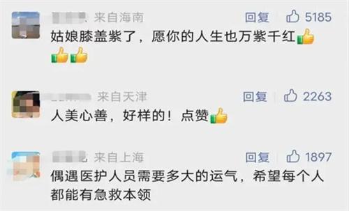 幾天之后商場的工作人員給范巧蓉打電話,表示暈倒的大叔目前已經脫離了危險,家屬想要當面對范巧蓉表示感謝,但被她拒絕了,她認為自己只是做了一個護士該做的事情,只要結局是好的自己也就放心了,距離事發已經過去一周了,但范巧蓉的膝蓋仍然是青紫的,這正是她跪地救人時留下的。