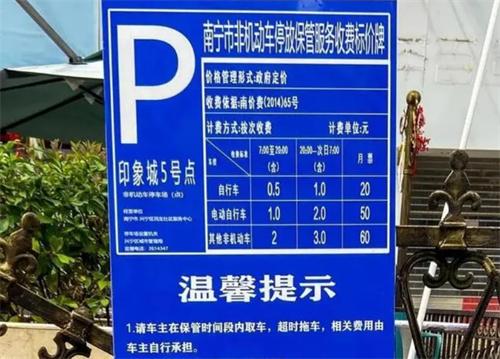 除此之外,南寧本地的網友還反映,當地的停車收費簡直讓人看不懂,就連自行車和電動車在路邊停放也需要收費,去南寧市某個社區服務中心經營的非機動車停車場收費標準上所示,七點鐘到八點鐘自行車停放收費0.5元一次,電動車停放一元一次,晚上八點鐘到次日七點,自行車停放一元一次,電動車停放兩元一次。