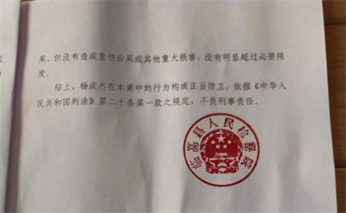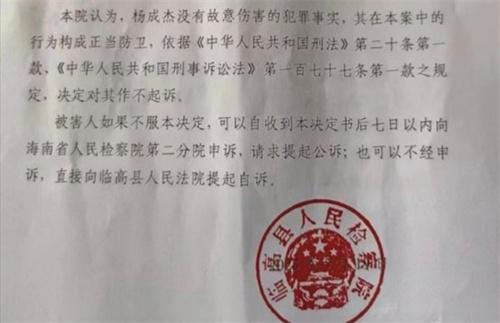 楊成杰在申訴之后,臨高縣檢察院經(jīng)過審理之后認為楊成杰沒有形成故意傷害犯罪事實,砍傷楊慶全行為在本案當(dāng)中屬于正當(dāng)防衛(wèi)。