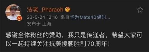 很多人在說起法老這名說唱歌手時,第一印象就是一名無厘頭的說唱歌手或者是二元素極其飽滿的歌手。但這只是大家對于法老的第一印象而已,如果深入的去了解法老,你會發現在整個說唱圈里面法老師最讓人值得尊敬的歌手之一,然而就在今天的志愿者老兵的官方微博上,突然出現了一條關于法老捐款的文章,在文章里面提到了,法老在參與志愿軍老兵幫扶計劃時,總共捐款近1296537.06元,法老捐款的全部細節在文章中給闡述了出來。