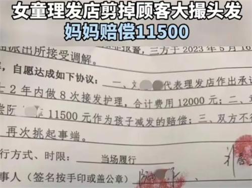 記者了解到這一消息之后,也立刻向這家理發(fā)店的老板進(jìn)行了聯(lián)系,理發(fā)店的老板表示,在當(dāng)時(shí)大家都非常的忙碌,沒(méi)有人看著這個(gè)6歲的小孩,小女孩看到柜子里有把剪刀,立刻拿出來(lái)就給顧客剪頭發(fā),被剪頭發(fā)的這名顧客,腦袋上最多的一縷頭發(fā)被小女孩直接剪掉,沒(méi)辦法的情況下顧客不得不報(bào)警來(lái)處理此事,警察接到報(bào)案之后,立刻來(lái)店里進(jìn)行處理,通過(guò)警察的調(diào)解之后,這件事情的最終處理結(jié)果就是女孩的家長(zhǎng)需要向這名顧客去賠償11,500元的損失,理發(fā)店還需要負(fù)責(zé)將這名顧客的頭發(fā)給接起來(lái),其費(fèi)用總共為12,000元,除了家長(zhǎng)賠償?shù)腻X需要接頭發(fā)之外,顧客還需要自己出500元。
