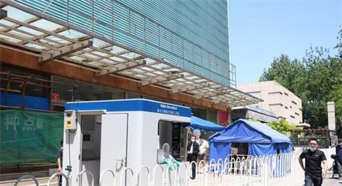 記者在向這名做核酸的工作人員了解完情況之后也在北京探訪了其他地區是否有沒有正在運轉的核酸亭,經過探訪之后發現北京市朝陽區勁松中街上也有一座目前正在正常運轉的核酸亭,而且這張核酸亭上還貼著標識牌。