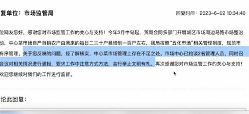 針對此事的發生,兩名管理人員已經在被約談,并且會對他們提出嚴厲的批評和教育,官方也給出表示他們是新人,可能在做法上有些激進,也對自己的管理方法有嚴重不足,所以進行批評教育是非常重要的一件事,每一個人都會有自己的出生和背景。不同的背景會給社會造成不一樣的效果,如果自己犯錯了,那我應該比較嚴肅的處理,加強對工作人員的素質教育,確保工作人員能夠在執行公務的期間更加規范化的做出一些事情。