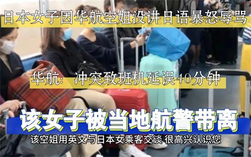 6月5日,有記者報(bào)道,在6月4日這一天有一架從日本富岡起飛飛往中國(guó)臺(tái)灣桃園機(jī)場(chǎng)的航班上,一名空姐和日本女子對(duì)話時(shí)并沒(méi)有講日語(yǔ),遭到了這名日本女子的暴怒辱罵。證明日本女子一邊辱罵空姐,一邊稱要用日文和自己對(duì)話,實(shí)際上沖突導(dǎo)致這趟飛機(jī)直接延誤了40分鐘才起飛,沖突到最后這名日本女子被日本富岡當(dāng)?shù)氐男星榻o帶離了現(xiàn)場(chǎng)。
