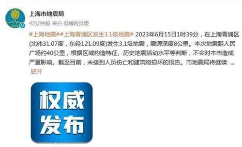 上海青浦區(qū)于2023年6月15日凌晨1:39發(fā)生3.1級地震,震源的深度是8千米。上海市地震局根據(jù)歷史地震活動水平、區(qū)域構(gòu)造的特征等因素進(jìn)行評判此次地震對上海市不會造成任何嚴(yán)重的影響。截止到目前為止,沒有收到任何建筑物損壞和人員傷亡的報告。此次地震發(fā)生的地點與上海市人民廣場的距離大約是40公里。