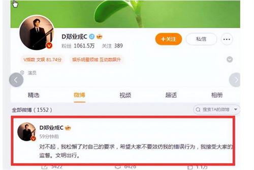 鄭業成作為一個公眾人物他在日常出行時都要做到傳播正能量,畢竟有著龐大的粉絲群體,以身作則是他必須要盡的社會義務,此次在出現這種不良行為時,鄭業成能夠及時認識自己的錯誤,反省自己的不足之處,他的態度誠懇也是值得人們去肯定的,希望鄭業成能夠以次為戒,在以后的工作與生活中規范自己的言行舉止。