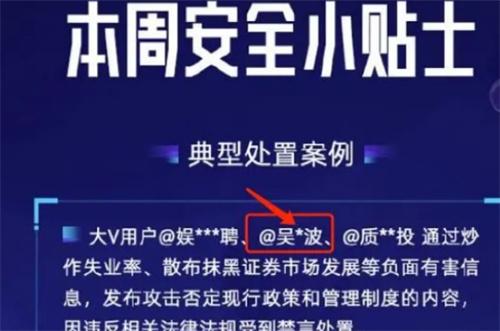 散播失業率、抹黑證券市場等一些負面有害信息發布攻擊否定現在的政策和管理制度的內容,違反了相關法律規定受到了微博禁言處置。北京時間6月26號微博發布了本周安全小貼士,在小提示中就顯示擁有473.2萬粉絲的大v用戶@吳曉波受到了微博禁言處罰。