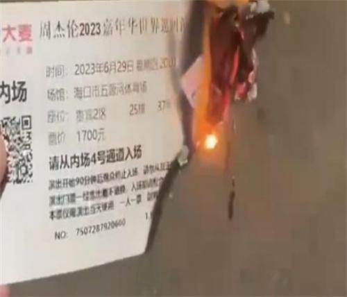 北京時間的6月29日,周杰倫在海口市舉辦了第1場演唱會,很多喜歡周杰倫的粉絲紛紛前往海口觀看周杰倫的演唱會,周杰倫演唱會門票的價格更是飆漲到每張8000元到1萬元的不等價格,這一場演唱會讓無數網友被稱之為豪門盛宴。在演唱會開場前的幾個小時,有黃牛將1700元購買的演唱會門票直接點燃,在邊燒的時候還邊拍攝視頻,并表示不賣了就是燒。旁邊兒另一位正在燒票的黃牛,一邊燒票還一邊向同伴打招呼聲快過來點根煙點根煙,這條視頻也立刻被網友發上了短視頻平臺。