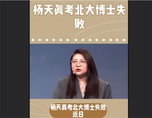 近日,楊天真在社交媒體上發(fā)布了一段視頻,在該視頻中分享了考取北大博士失敗的一段經(jīng)歷。然而讓人沒想到的事情是,楊天真的這段分享視頻在全網(wǎng)引起了輿論風暴,很多網(wǎng)友都在網(wǎng)上發(fā)帖吐槽,質疑楊天真在娛樂圈中已經(jīng)取得成功,是否意味著該放棄學術追求了,眾多網(wǎng)友的質疑瞬間讓楊天真卷入了一場質疑焦點中。