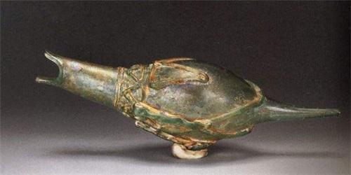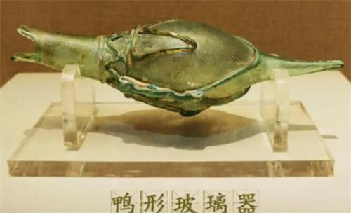 這件鴨形玻璃器的外貌是比較獨特的,擁有鴨嘴一樣的扁口和細細的尾巴,還有鼓鼓的肚子,遠處看起來就像一只正在伸展身體的鴨子。關于這個器皿的實際用途,學術界一直以來都存在著許多說法,有些人認為有可能是提醒著人們不要自滿的“座右銘”。畢竟在古代,人們通常會通過象征性的物品去傳達寓意和價值觀念。