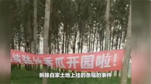 根據(jù)網(wǎng)絡(luò)上流傳的視頻,網(wǎng)友的鏡頭拍向執(zhí)法人員,視頻中城管執(zhí)法人員一只手拿著被撕破的廣告旗,另一只手拿著手機(jī)在進(jìn)行錄像。這名網(wǎng)友表示“我在自家的地里掛橫幅不行嗎?”卻并沒(méi)有得到城管的回應(yīng),視頻當(dāng)中還有一位身穿城管制服的工作人員詢問(wèn),“那片樹(shù)林是你們家地嗎”,拍攝者作出肯定的回復(fù)之后,城管執(zhí)法人員則表示可以種地,但是不能打廣告,還表示那邊是公園。