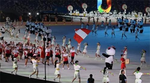 7月28號晚上,成都大運會正式開幕,每一個入場方隊旁邊都跟著一只蹦蹦跳跳的熊貓蓉寶引領運動員入場。北京時間7月28號晚上成都第31屆世界大學生夏季運動會正式開幕,整個開幕式都能夠感受到隨處可見的大熊貓元素、引導員、擺渡車、節目單、鼓掌拍等等都出現了蓉寶的身影。