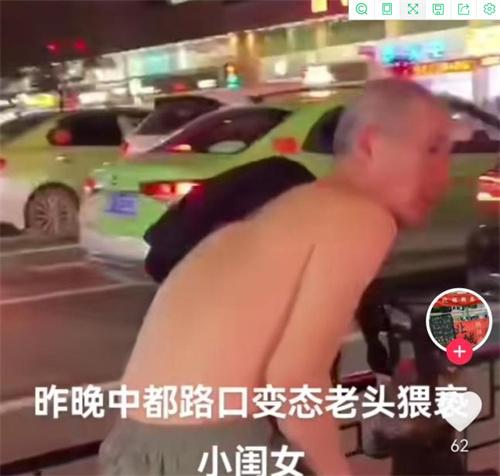 網絡上所流傳的視頻顯示當晚一名赤裸上身的老大爺在街頭上行走時,將手搭在了前面一個年輕女孩的肩膀。女孩在察覺之后,嘗試著躲避老大爺,但是老大爺仍然不知悔改,不斷的向女孩靠近。旁邊一名騎車路過的女子看到后,表示非常氣憤,并且發生對老大爺的行為進行了指責,老人在面對女孩的指責時態度非常狂妄,對女子進行了辱罵,并且揚言要報警。這邊群眾對這名老人紛紛進行指責,見此情況老人才騎車逃離現場,這件事引起了廣泛的關注。讓公眾們覺得非常憤慨,認為這名老人的行為對女孩的個人隱私造成了侵犯,同時還對女性進行了侮辱,表現出對女性的不尊重。