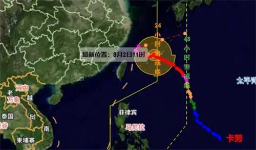 8月2日,早晨臺(tái)風(fēng)卡努位于浙江省玉環(huán)市東偏南方向約630公里的西北太平洋洋面上,預(yù)計(jì)臺(tái)風(fēng)卡努將要進(jìn)入東海。