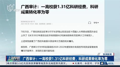 近日,廣西省壯族自治區(qū)第十四屆人大常委會的第4次會議已經(jīng)正式召開了,廣西壯族自治區(qū)的審計廳廳長羅海山在本次會議上作了2022年度廣西壯族自治區(qū)對各個高校財政補(bǔ)助情況的專項資金管理使用的審計工作報告。在該份報告里面詳述的揭露了廣西在科教振興資金審計方面的具體情況,除此之外,在這份報告里面還出現(xiàn)了一個令人萬分震驚的情況,就是各大高校的科技成果在市場的轉(zhuǎn)化率非常的低。
