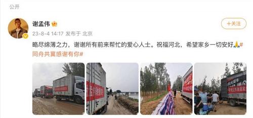 近日,有網友紛紛懷疑演員謝孟偉捐贈物資作假,這件事情也立刻在網絡上引發了網友們的深入討論。在北京時間的8月3日,謝孟偉曾經發布過一條關于物資正在路上行駛的視頻,在這條視頻里面還可以清晰地看到,關于卸貨的這些場景,從物資車里面可以發現,物資里面包含了方便面以及純凈水等各種食品。謝孟偉雖然發布了這條視頻來澄清自己,但卻并沒有達到澄清自己的效果,在北京時間的8月6日,謝孟偉就捐贈物資作假的這一消息再次給出回應,稱自己確實給災區捐贈物資了,請網友不要。總是寫車在外地轉了三圈,沒有看到現貨這樣的消息,也不要再發送類似的消息去誤導網友。