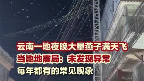 近日,一位居住在云南麗江永勝縣的當地居民拍攝了一幕燕子滿天飛舞的視頻。在視頻中可以看到在街道的天空上盤旋著很多的燕子,甚至連當地的電線桿上都站滿了燕子,有很多燕子,不斷的四處亂飛場面及其的壯觀。限制漫天飛舞的這種情況,不僅使當地居民產生了極大的擔憂,同時網友們看到這一視頻之后也引發了自身的擔憂,朋友們擔心這種情況和地震會有關系。