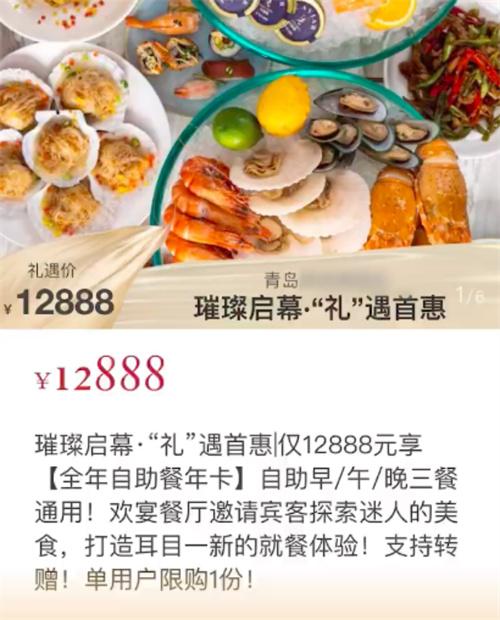 8月9日,有一名女子曬出了自己搶購了一張12888元的酒店自助餐年卡。這位女子稱自己買了這張年卡之后,可以再距離自己很近的酒店里面這一年享受每日三餐。隨后也有記者和這名當事女子取得了聯系這名女子表示,自己當時搶購這張自助餐年卡時,是由于這家賓館剛剛開業就搞出了10張自助餐年卡。而自己看到年卡之后立刻便進行了搶購,與自己的公司和酒店只有兩三分鐘的距離,距離近去吃飯也比較方便,更何況自己在點外賣時也需要花錢的,而且這一年點外賣花的錢也不比年卡的錢要少。