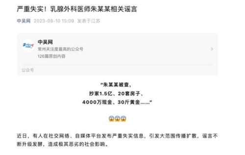 最后記者也發現,在常州當地的媒體曾經對朱某蘭進行過具體的報道,在這份消息上顯示朱某蘭是武進醫院,人民醫院乳腺外科學科的主要工作人員,同時也曾經在第二人民醫院乳腺外科擔任過主任一職,記者也和武進區的人民醫院取得了聯系。該醫院的工作人員針對朱某蘭這一消息給出回應,稱朱某蘭并不是本醫院的醫生,隨后記者又和常州市第二人民醫院取得了聯系,該醫院的工作人員在聽聞記者的提問后。表示對于朱某蘭被抓的這一消息,自己并不知情,朱某蘭被抓的具體情況需要向常州市衛健委進行咨詢。