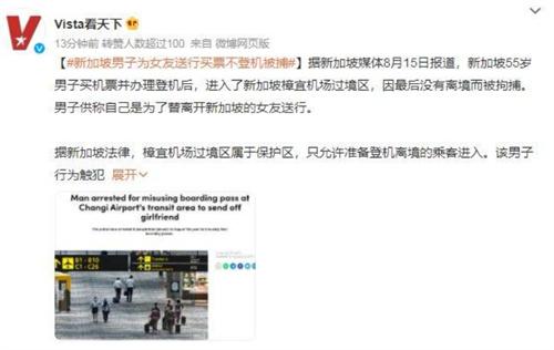 8月19日消息,新加坡一名男子為了和女友道別,特意購買了一張機(jī)票進(jìn)入到樟宜機(jī)場過境區(qū)為女友送行。然而在送行之后這位男子并沒有離開新加坡境內(nèi),這件事情被警方發(fā)現(xiàn)之后當(dāng)場逮捕了這位男子。因?yàn)檫@位男子的行為已經(jīng)違反了新加坡的法律,這個(gè)男子濫用登記證進(jìn)入過境區(qū)被警方逮捕之后,也給很多具有同種行為的人敲響了警鐘。