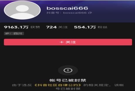 北京時(shí)間8月31日,在社交平臺(tái)上面比較火的網(wǎng)紅車評(píng)人蔡老板的抖音賬號(hào)被封禁,同時(shí)在微博上面的賬號(hào)也一樣被封禁,一些網(wǎng)友查詢了蔡老板的抖音賬號(hào)被封原因才得知是因?yàn)檫`反了相關(guān)的社區(qū)自律公約,也就意味著蔡老板發(fā)布的一些視頻可能說沒有符合平臺(tái)的要求,蔡老板在抖音上面總共有500多萬的粉絲,算得上是一個(gè)大網(wǎng)紅了。