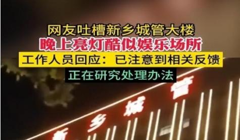 北京時間8月31日,一位網(wǎng)友在社交平臺上面發(fā)布了一則視頻,引發(fā)了公眾們的關(guān)注,在河南新鄉(xiāng)城管大樓晚上經(jīng)常會亮起類似于KTV等娛樂場所的燈光,對于這件事情,新鄉(xiāng)城管的工作人員回應,這是屬于市政工程當中的亮化工程,該工作人員也表示會將這個情況反映給領(lǐng)導,讓領(lǐng)導來進行決斷。并且這件事情是涉及到了文化以及城鄉(xiāng)管理等多個方面的內(nèi)容。