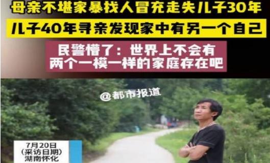 在北京時間的7月20日,位于湖南省懷化有一名男子在意外走丟30年后,在警察的幫助下重新返回了家中,回到家中之后的這位男子竟然發現在家里面還有一個自己存在,這一消息引發了極大的輿論之聲,就在眾人為這件事情紛紛猜測之時,這位男子的二姐終于將這件事情的真正原因講述了出來。