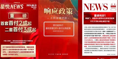 深圳市某些樓盤在認房不認貸,政策執行的過程中率先打出了兩成首付的海報。但是第2天又迅速將海報撤銷,并告知購房者兩成首付暫時無法執行,這一行為引起人們的質疑和猜測,對于市場形勢也產生了影響。