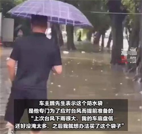 9月6日,臺風海葵在福州地區沿海城市登陸上岸,整個福州地區受到了極端天氣的影響,連續幾天都是出現了暴雨的天氣,在城市的許多地下車庫以及道路全部都被積水給淹沒。對此,有一位十分聰明的車主就拿了一個非常大的塑料袋,將自己的汽車全部都套在了塑料袋里面,這也讓他的汽車并沒有被積水給浸泡,也讓他的車子躲過了這一次的暴雨。