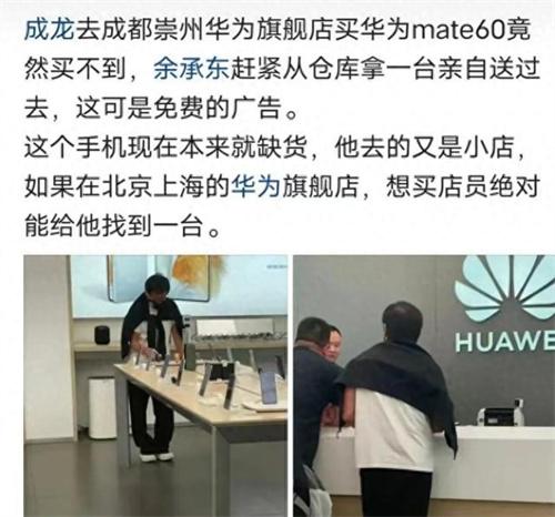 9月11日,一位網(wǎng)友在微博上面曬出了一組照片,而照片當(dāng)中的人物是家喻戶曉的大明星成龍,照片的拍攝地點(diǎn)是在成都崇州華為專賣店。據(jù)了解,成龍是趁著拍電影的空閑時(shí)間來到了華為專賣店,想要購買一部華為手機(jī)。根據(jù)專賣店的店員介紹,他又前往了前臺(tái),咨詢了相關(guān)的一些手機(jī)情況,而網(wǎng)友表示成龍大哥這一次是想要買華為最新出的華為Mate 60,但是沒有現(xiàn)貨。