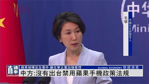 毛寧9月13日例行主持記者會,來自日本朝日電視臺記者提問,關(guān)于媒體報(bào)道部分中國政府機(jī)關(guān)禁止使用蘋果手機(jī)的消息是否屬實(shí)?外交部是否禁止使用蘋果手機(jī)?對此毛寧表示中國一直堅(jiān)持推進(jìn)高水平對外的發(fā)展,保護(hù)外商投資權(quán)益,營造法治化、國際化、市場化的營商環(huán)境,對于外資的企業(yè)要始終保持開放態(tài)度,非常歡迎外資在中國把握發(fā)展機(jī)會,共同的努力發(fā)展中國經(jīng)濟(jì),并沒有出臺禁止使用蘋果手機(jī)政策。