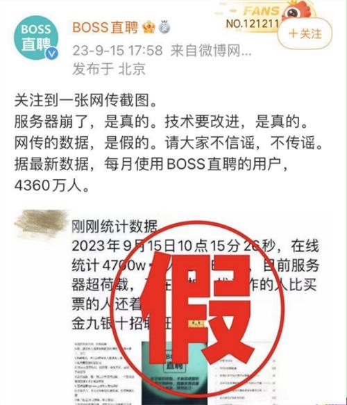 一位稱自己是在boss直聘工作的人士,在社交媒體上表示,每到金九銀十的時候就迎來了招聘的旺季,而在今年的9月15日,這一天經過統計,在boss直聘上總共有4700外人正在刷新平臺頁面,由于同時登陸boss直聘的人數過多,導致服務器的荷載不堪重負,目前正在對服務器進行維護。