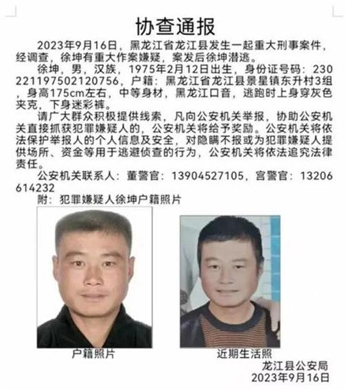 在北京時(shí)間的9月16日,一起震驚全國(guó)的重大刑事案件在黑龍江省的齊齊哈爾市龍江縣發(fā)生了,這起案件在發(fā)生之后,警方也極其快速的對(duì)外發(fā)布了一份協(xié)查通報(bào),犯罪嫌疑人畏罪潛逃,希望廣大群眾可以提供犯罪嫌疑人的相關(guān)線索,并對(duì)犯罪嫌疑人進(jìn)行調(diào)查。