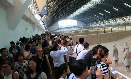 在今年的中秋和國慶,長(zhǎng)達(dá)8天的小長(zhǎng)假中,諸多旅游產(chǎn)品相繼推出,諸多旅游目的地變得越來越火爆,越來越多游客紛紛涌入西安,為的就是目睹“千年兵馬俑”的風(fēng)采,此舉動(dòng)也直接引起了兵馬俑景點(diǎn)人潮擁擠,兵馬俑都被“擠”得沒地方站。