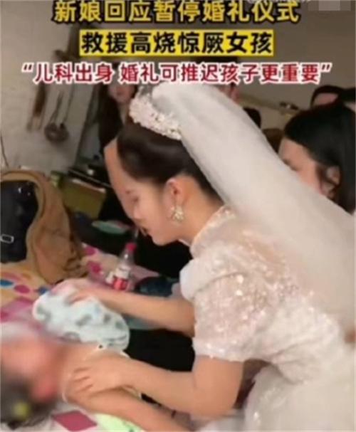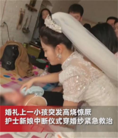 新娘表示當時她在準備上臺舉行結婚儀式的時候,但是新郎的弟弟突然在這個階段跑了過來,說有一個小孩子高燒驚厥了,他的家屬也是非常的著急,于是新娘馬上告訴司儀,先讓婚禮儀式進行暫停,新娘自己就是學習護理的,而且在醫院里面當著護士,所以他馬上跑到了小孩子面前進行物理降溫,同時還將自己所學到的一些知識叮囑給了他的家長,隨后小孩子被趕來的120送到了醫院里面進行救治,所幸的是這個小孩子目前并沒有其他的什么狀況,身體也是恢復的非常的不錯,而小孩子的家屬也是非常感謝新娘的幫助。
