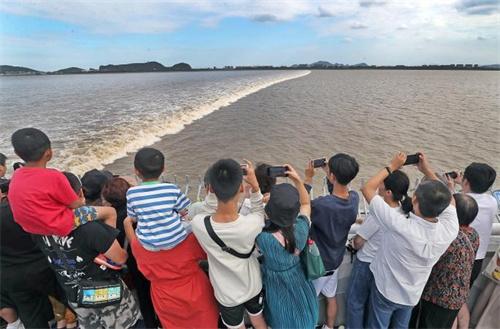 每年錢塘江大潮都吸引了眾多游客前往觀賞,眾多人慕名而來,希望能夠目睹壯觀的場景,最令人期待的也是不同行進(jìn)的方向有兩股或多股的潮水在共同相遇時(shí)出現(xiàn)的場景。當(dāng)兩股潮水相遇時(shí)產(chǎn)生了碰撞,會(huì)有數(shù)米高的水花出現(xiàn)在陽光照射下,光芒閃耀,就像煙花一樣炸開在水花飛濺中,還有美麗的水珠形成,在空中飄蕩,晶瑩剔透,美不勝收。
