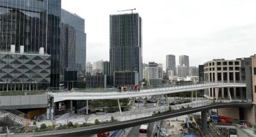 根據北外灘集團空中連廊項目負責人徐志良向記者介紹,北外灘空中連廊示范段一期工程已經在2022年底的時候就已經竣工,空中連廊示范段2期項目也將會在近期沖刺完工,也將會全力彰顯當年開工當年竣工的北外灘加速度。該段連廊式示范段建成之后,將會形成一個閉環空中步行系統,將北外灘核心區域的商業綜合體進行無縫串聯。
