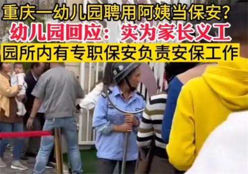 近日,有一位網友在短視頻平臺上發布了一條視頻,引發了社會各界的多方關注。在這條短視頻里面,這位網友表示位于重慶是有一家幼兒園,竟然聘請了一名阿姨當做該所幼兒園的保安。這條視頻在被網友們瀏覽之后,紛紛引發了網友們的熱切討論,隨后重慶市該所幼兒園對于網上的相關視頻給出了回應,表示并不是原方聘請的保安,而是家長朋友們自發組成的義工。